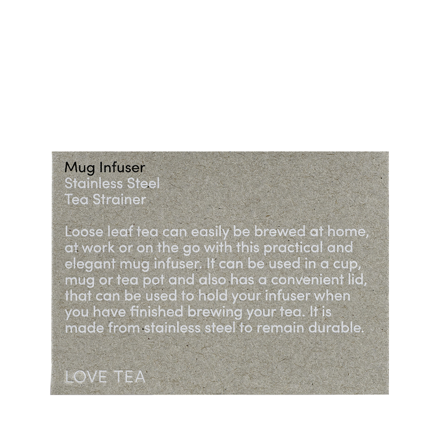 High quality stainless steel mug infuser - practical and elegant! Now you can easily brew your loose leaf tea at home, work or on the go. It can be used in a cup, mug or teapot and has a handy lid that can be used to hold your infuser for when you've finished brewing your tea.